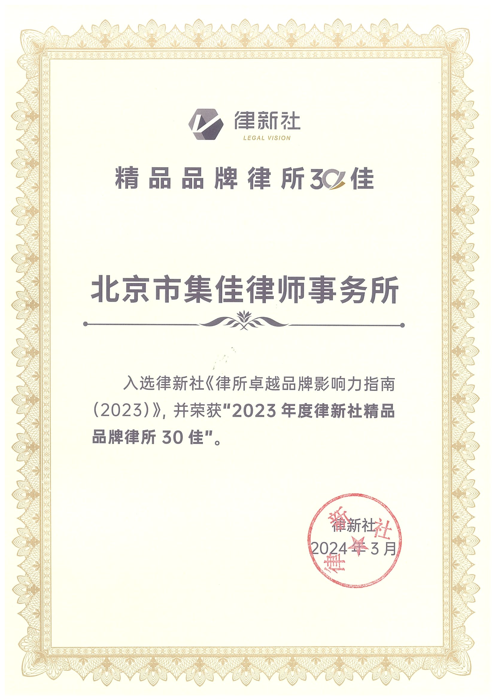 >雷速>关于我们>荣誉概览>2024>雷速入选 “2023年度律新社精品品牌律所30佳”